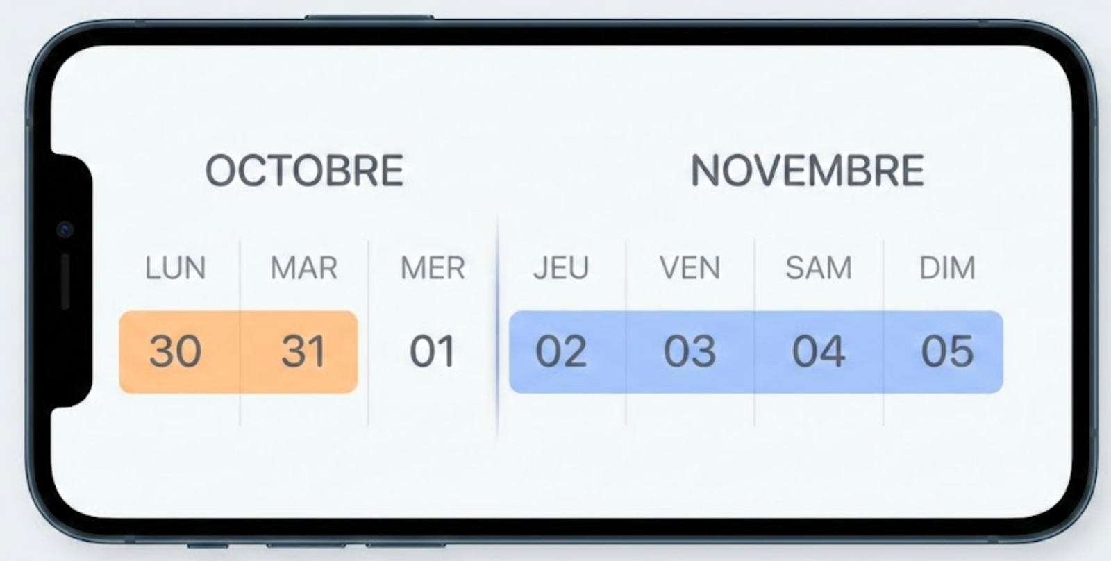Une "semaine à cheval", c'est une semaine qui commence à la fin d'un mois et se termine au début du mois suivant (par exemple : du lundi 30 octobre au dimanche 5 novembre).