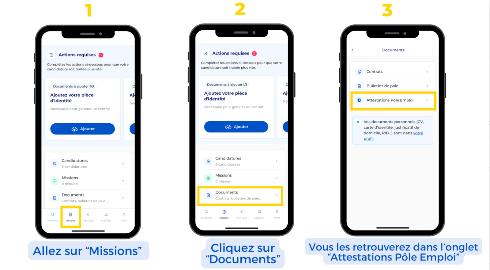 Vous avez besoin de votre attestation pour vos actualisations ? Vous pouvez la retrouver très facilement dans votre espace Gojob :